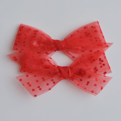 Red Mesh Swiss Dot Hairbow